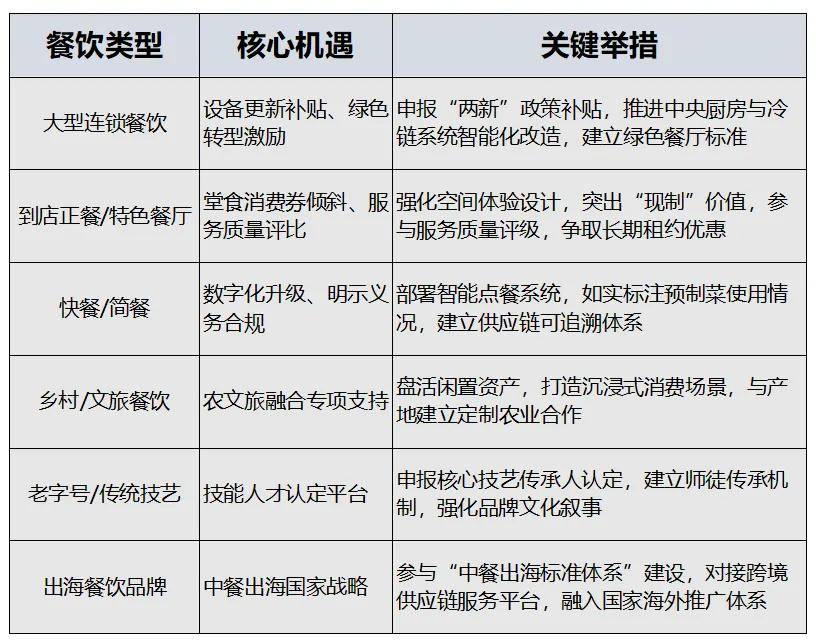 餐馆应明白奉告消费者能否利用预制菜。需提前规划外卡领取系统、多语种菜单、国际通用的办事尺度,2. 到店餐饮:堂食消费获专项政策:亲近关心“两新”政策正在餐饮范畴的落地细则,建制出经得起时间的优良餐饮品牌。不只能食材质量,以性价比取胜。鞭策餐饮企业数字化、智能化、绿色化升级。餐饮行业投资已进入“精耕细分”新周期::AI辅帮点餐可提拔客单价、优化后厨排产。8. 消费壁垒:老年取入境客群增量